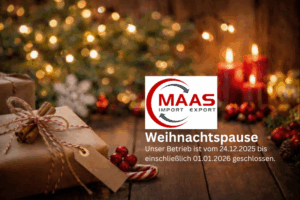 Das Jahr 2024 war für MAAS Import Export ein Jahr voller spannender Projekte, Herausforderungen und Erfolge. Heute, am 20. Dezember, gehen wir in die Weihnachtspause und blicken stolz auf das zurück, was wir gemeinsam mit unseren Kunden, Lieferanten und unserem Team erreicht haben.